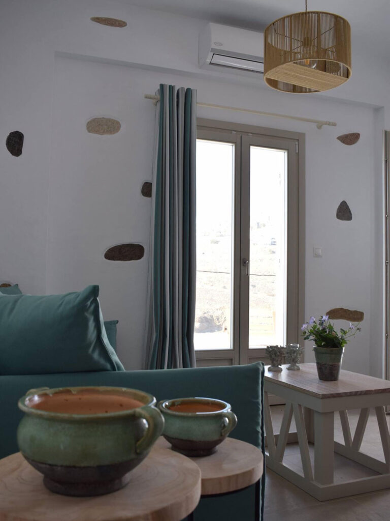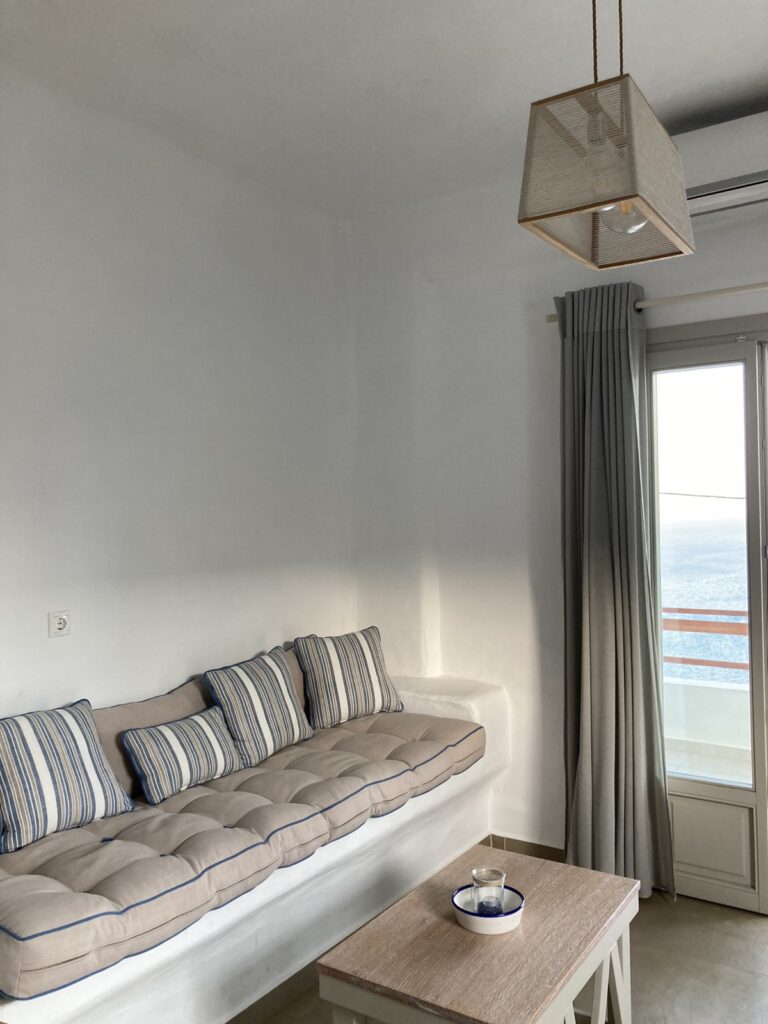 Τοποθετημένο στον περιφερειακό δρόμο μεταξύ Πέρα Γυαλού και Χώρας, το κατάλυμα μας θα σας συναρπάξει με την μαγική του θέα προς το απέραντο γαλαζιο καθώς και προς τον οικισμό της Χώρας όπου δεσπέζει το επιβλητικό Ενετικό Κάστρο.